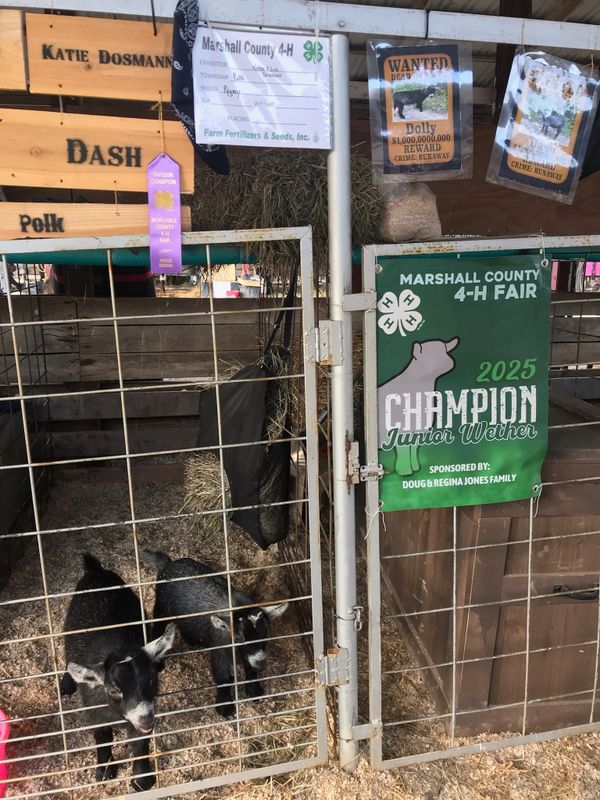 If you were at the Marshall County Fair for the 2025 season, our 1st year with this new line, you would have seen our banners in the stalls of many of the winners! We are so grateful for the opportunity to try out our feed with so many customers! We are so proud of all the kids that showed this year!